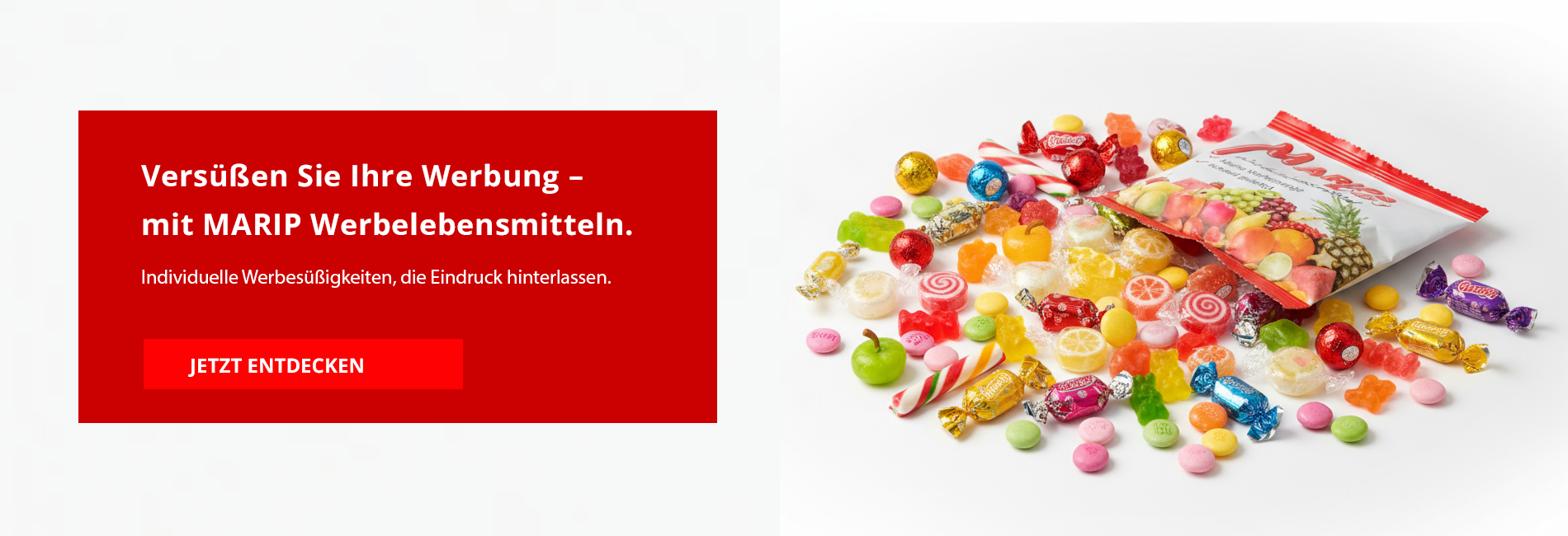 Entdecken Sie unsere süßen Werbeideen, die Kundenherzen im Sturm erobern. Von Bonbons bis Schokolade – MARIP Werbelebensmittel macht Ihre Marke süß. Sympathisch. In Erinnerung.